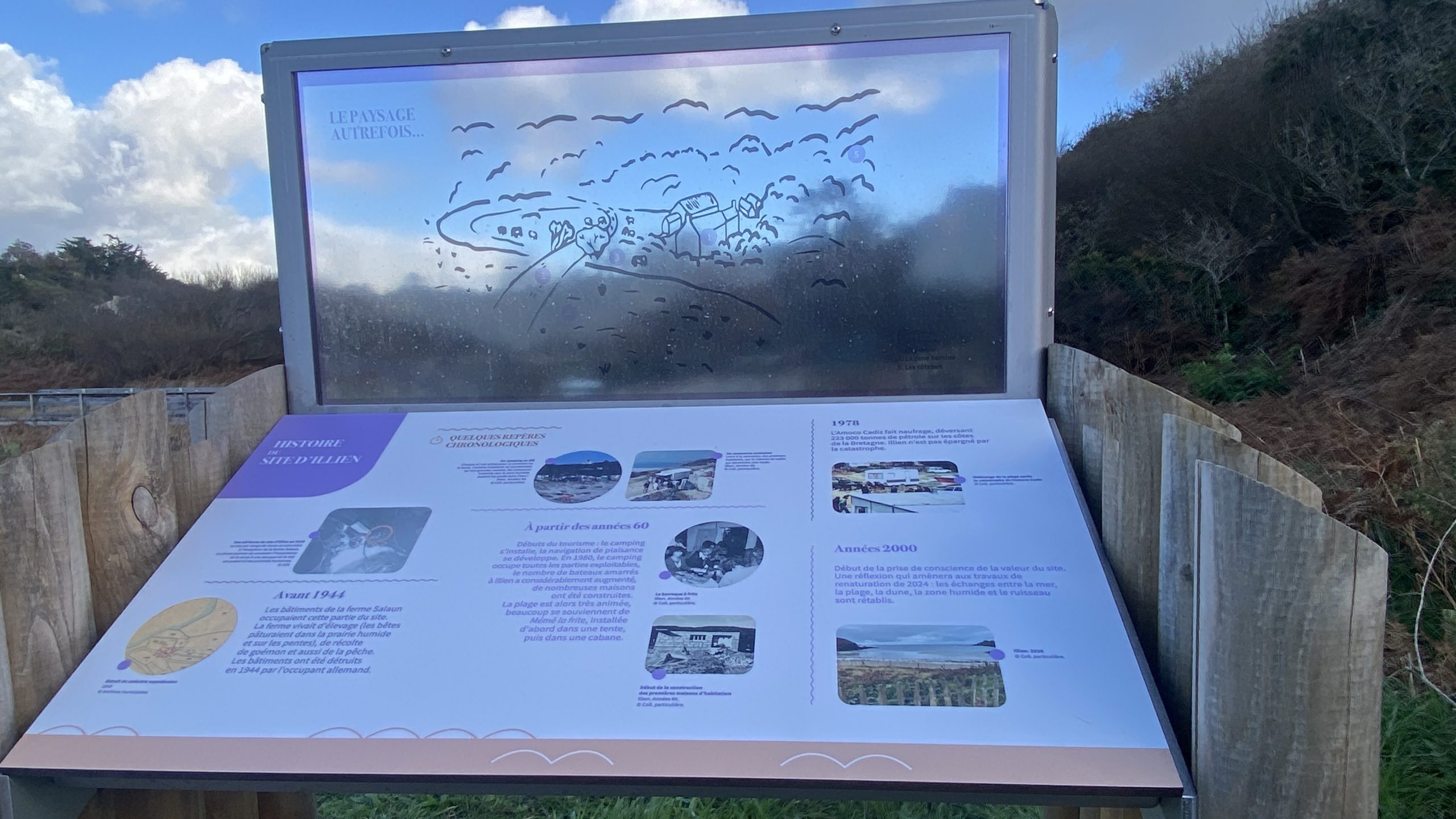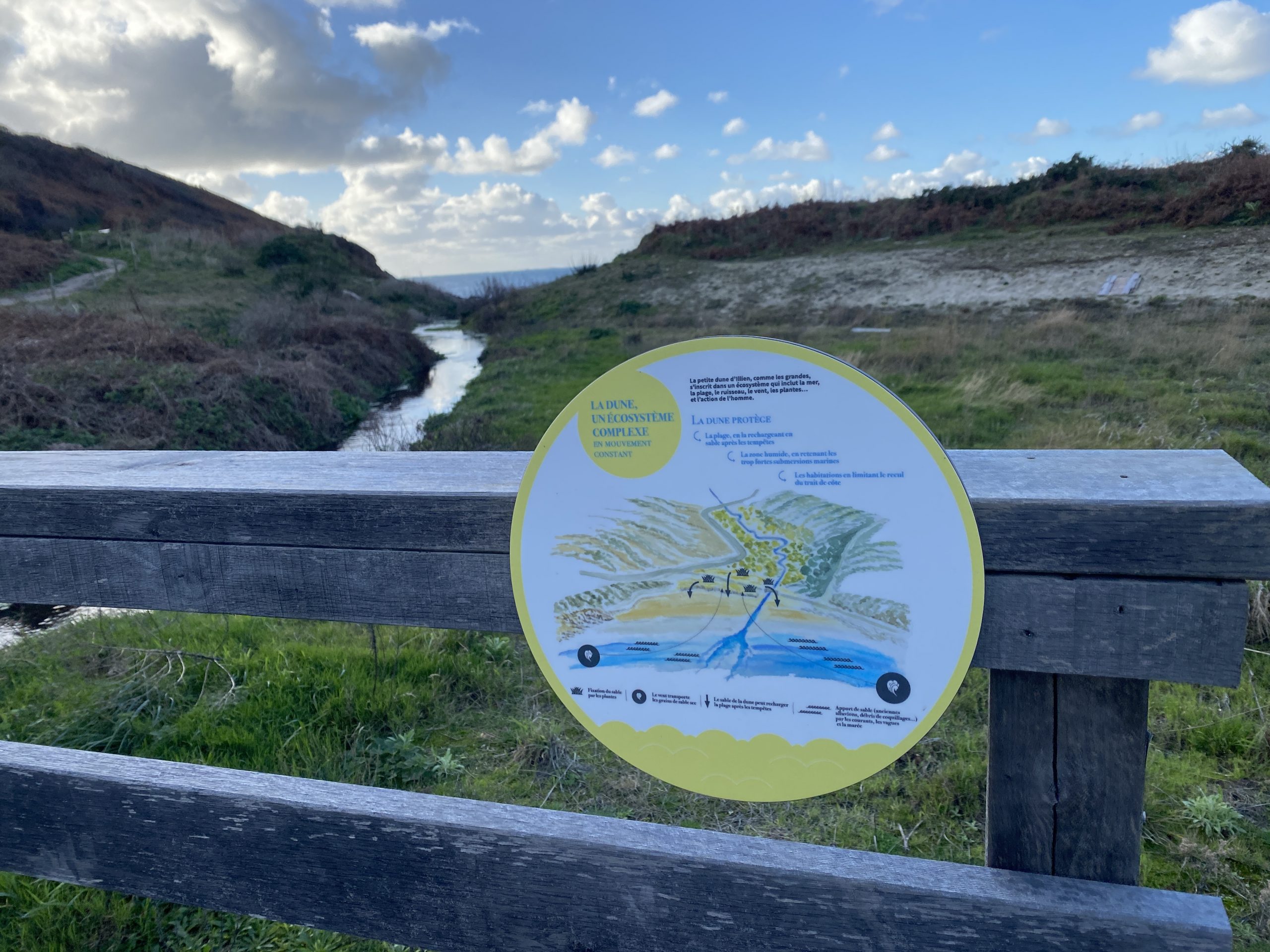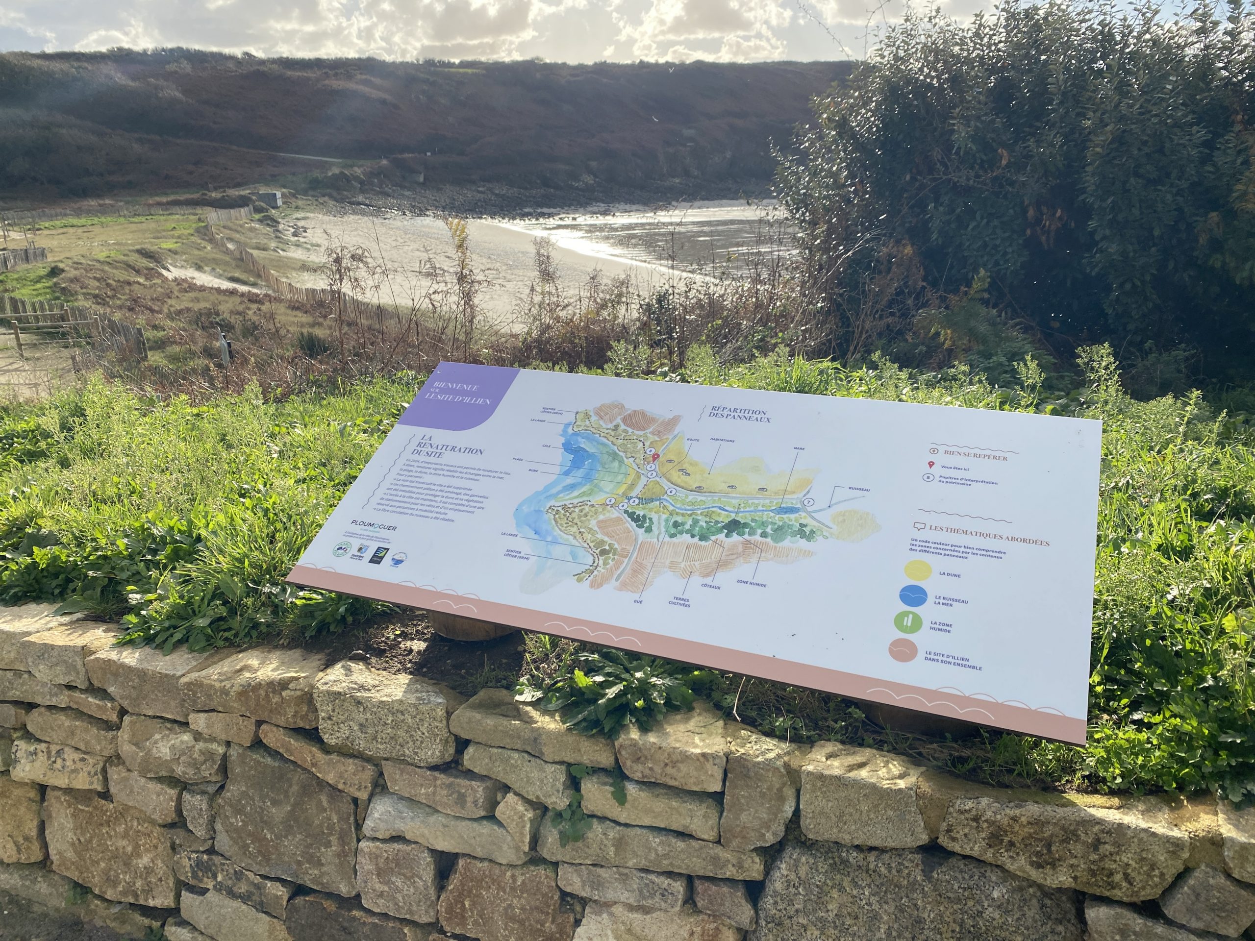 La commune de Ploumoguer a entrepris de renaturer le site d’Illien : réhabilitation des dunes et de la zone humide. Un aménagement paysager est donc en cours coordonné par Agnès Boshet, architecte paysagiste.